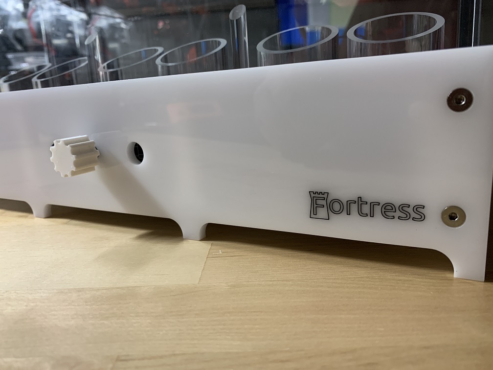 The choice of acrylic colours is wide and includes translucent, frosted, mirrored, tinted, fluorescent as well as conventional colours. If the case sides are opaque to IR then an additional hole is cut in front of the IR receiver. The premium case has additional engraved elements and these can be filled with a choice of colours.