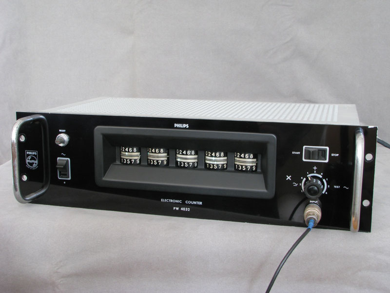 The plethora of methods developed during the late 1940's to the 1970's for displaying/counting numerical information were numerous and varied. These included incandescent displays (e.g. edge lit displays such as those from Non-Linear Systems), neon gas based displays such as Nixie tubes and Dekatrons, vacuum fluorescent displays (VFDs), light-emitting diodes (LEDs) and liquid crystal displays (LCDs). Some of these possess a certain charm, such as nixie tubes and Dekatrons with their warm orange glow and others not so much. What makes the E1T stand out from these technologies is that it represents the adaptation of another vintage display technology, the cathode ray tube into a discrete counting device. The E1T uses a cathode ray and some neat tricks to display a green line in 10 positions, each cunningly numbered from 0 to 9. These were used in early counters, such as the one pictured here: