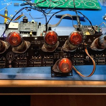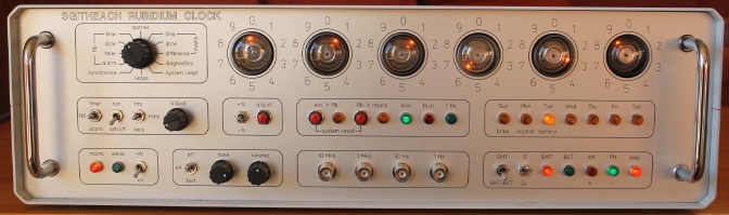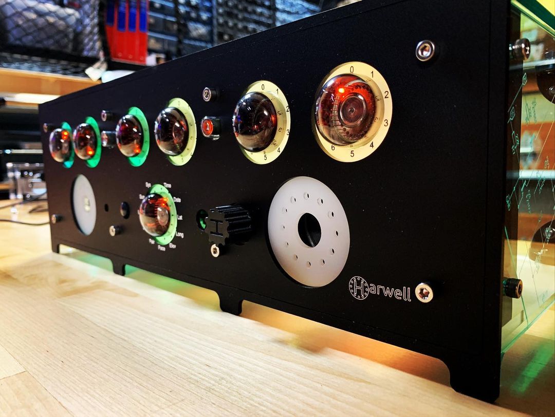 What is The Harwell Dekatron Clock? It's the culmination of two like-minded individuals who like to tinker with vintage display technologies and turn them into functional time-pieces. This clock is unique in many respects. The Harwell Dekatron Clock is a combination of old-skool technology married with a very modern micro-controller and 21st century case construction and aesthetics. It offers lots of customisation options, such as different "faces", LED colours (bling), chimes, GPS or WIFI disciplined timekeeping and is also open source in its design philosophy.