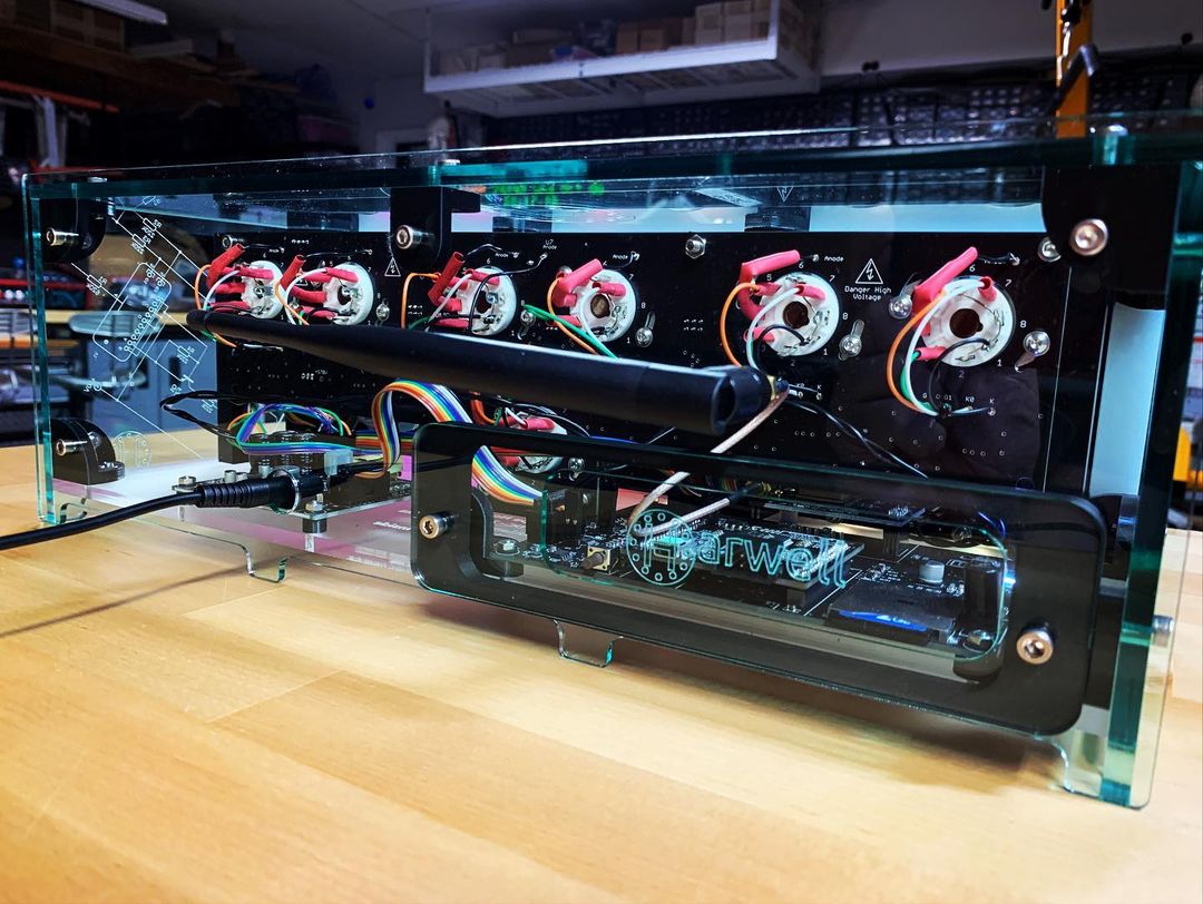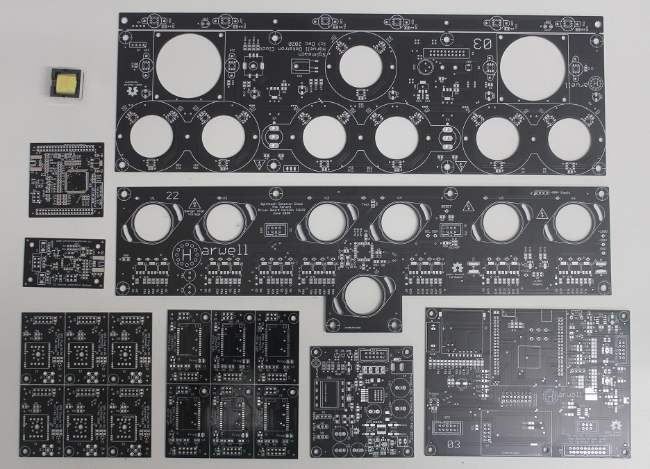 The clock hardware is complex and we think comprehensive. We wanted to respect the rarity of these tubes by creating a first class clock to use them. The main elements of the hardware are: