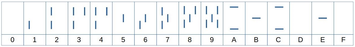 Fonts can also be creative and count in some perhaps weird fashion. This font uses BASE 5, pental or Quinary counting. I'll let you work out what each character counts. (Hint: the eighth vertical centre line has a value of quinary 10.)