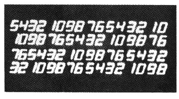 The Telefunken paper shows how, using a shed load of transistors, diodes and passives, a display on a CRT of 4 rows of 16 numbers could be drawn. The numbers are a simple 7 segment based characters. Clipped from the paper: