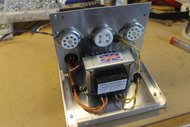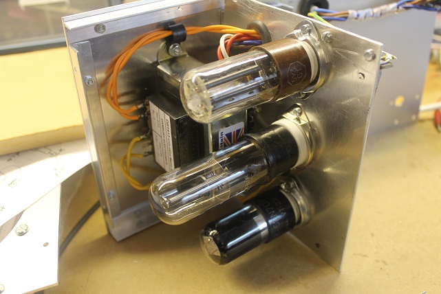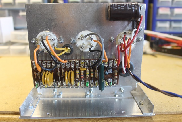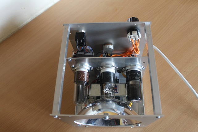 Some adaptation to modern components values was needed. A 50k resistor became 47k, a 0.005μF capacitor became 4n7 and so on. But I used the same rectifier (5Y3) and double triode (6SN7GT). The transformer is a general purpose one aimed primarily for all-valve audio preamplifiers. The rest of the components are standard and easily obtained from suppliers or ebay. During construction it became quiet clear how small the modern electrolytic capacitors are compared with the illustrations in the magazine.