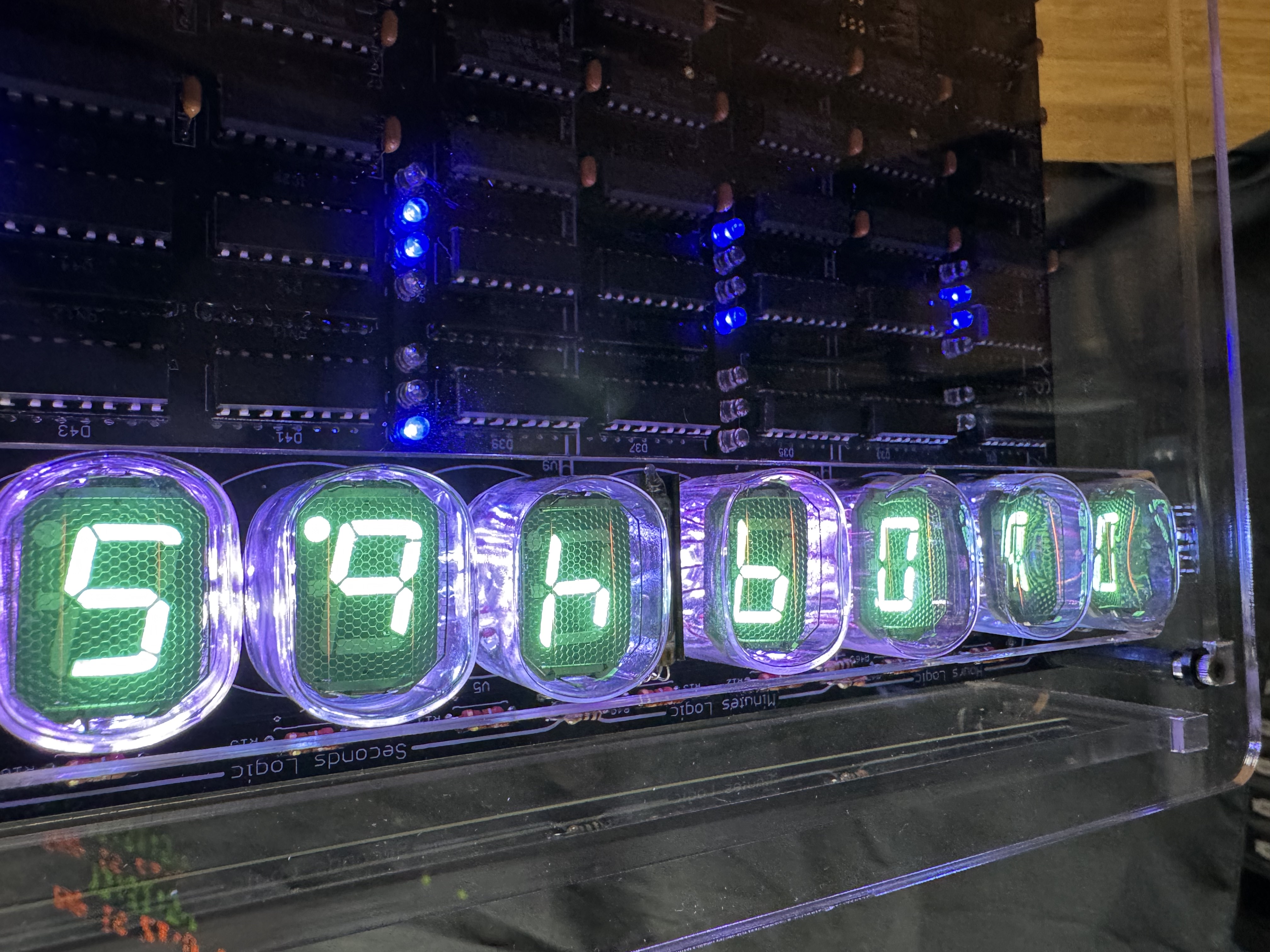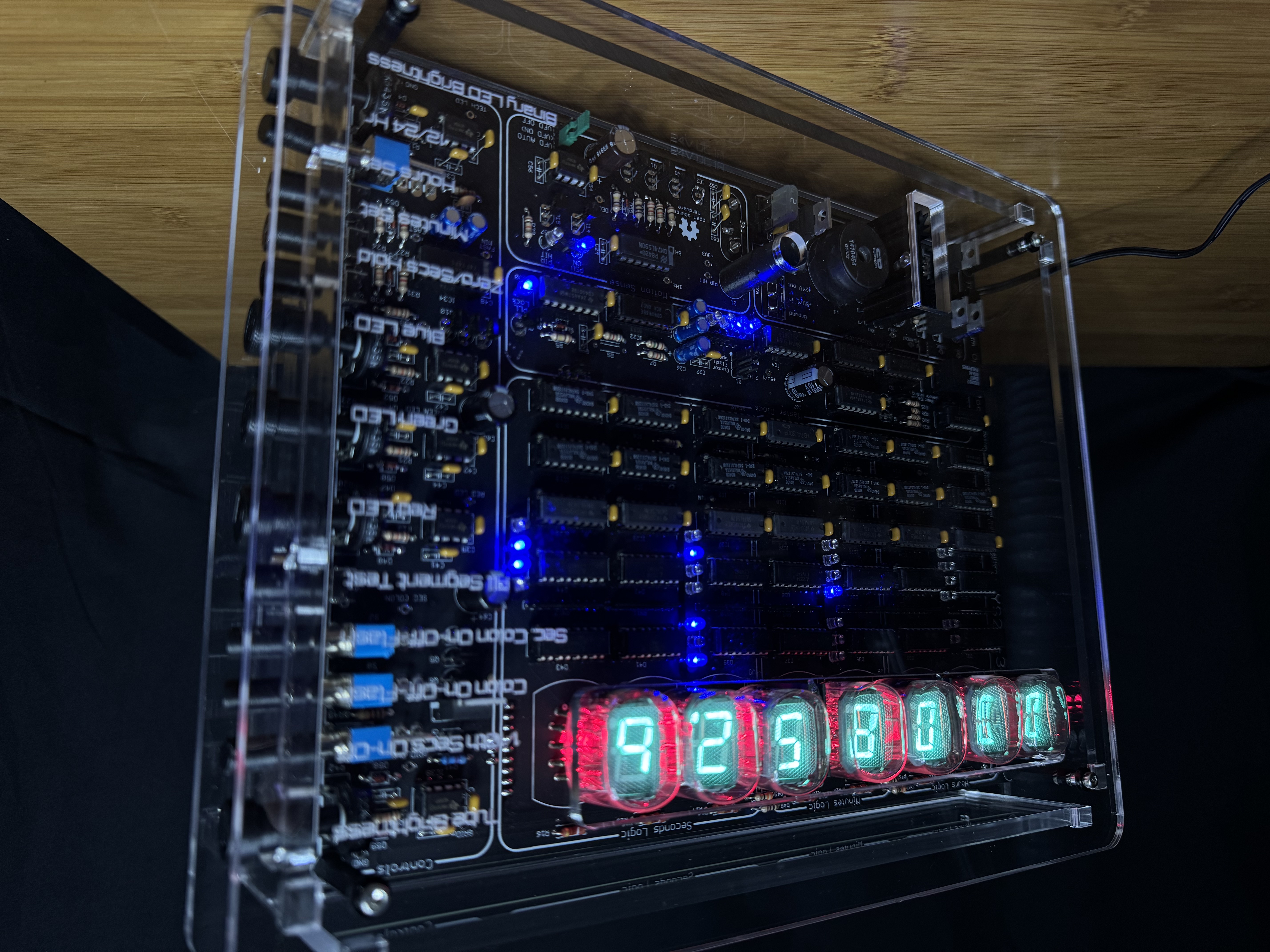 - 7 IV-22 or YS27-3 vacuum fluorescent tubes (VFDs) with a switchable 1/10ths seconds tube
