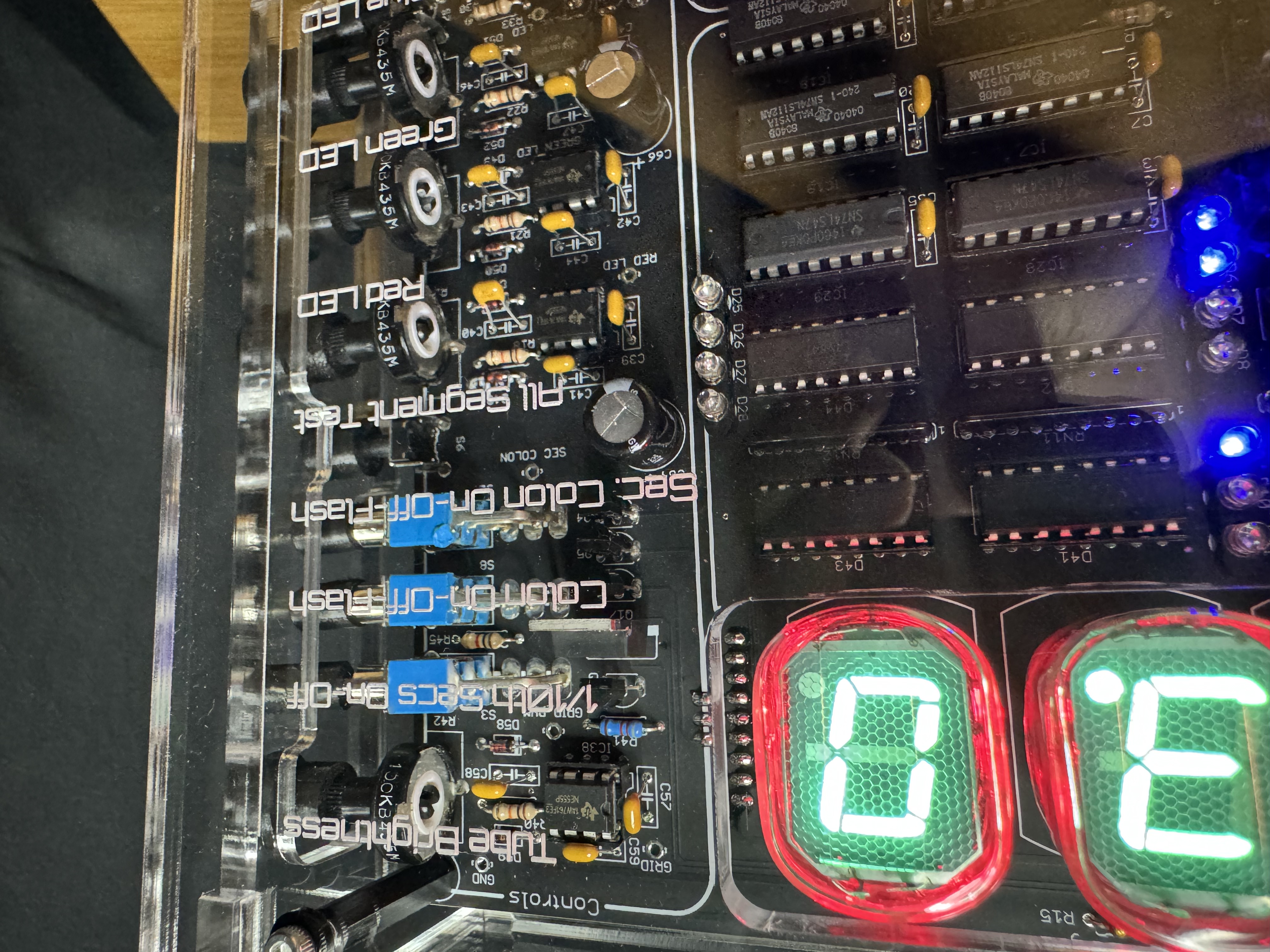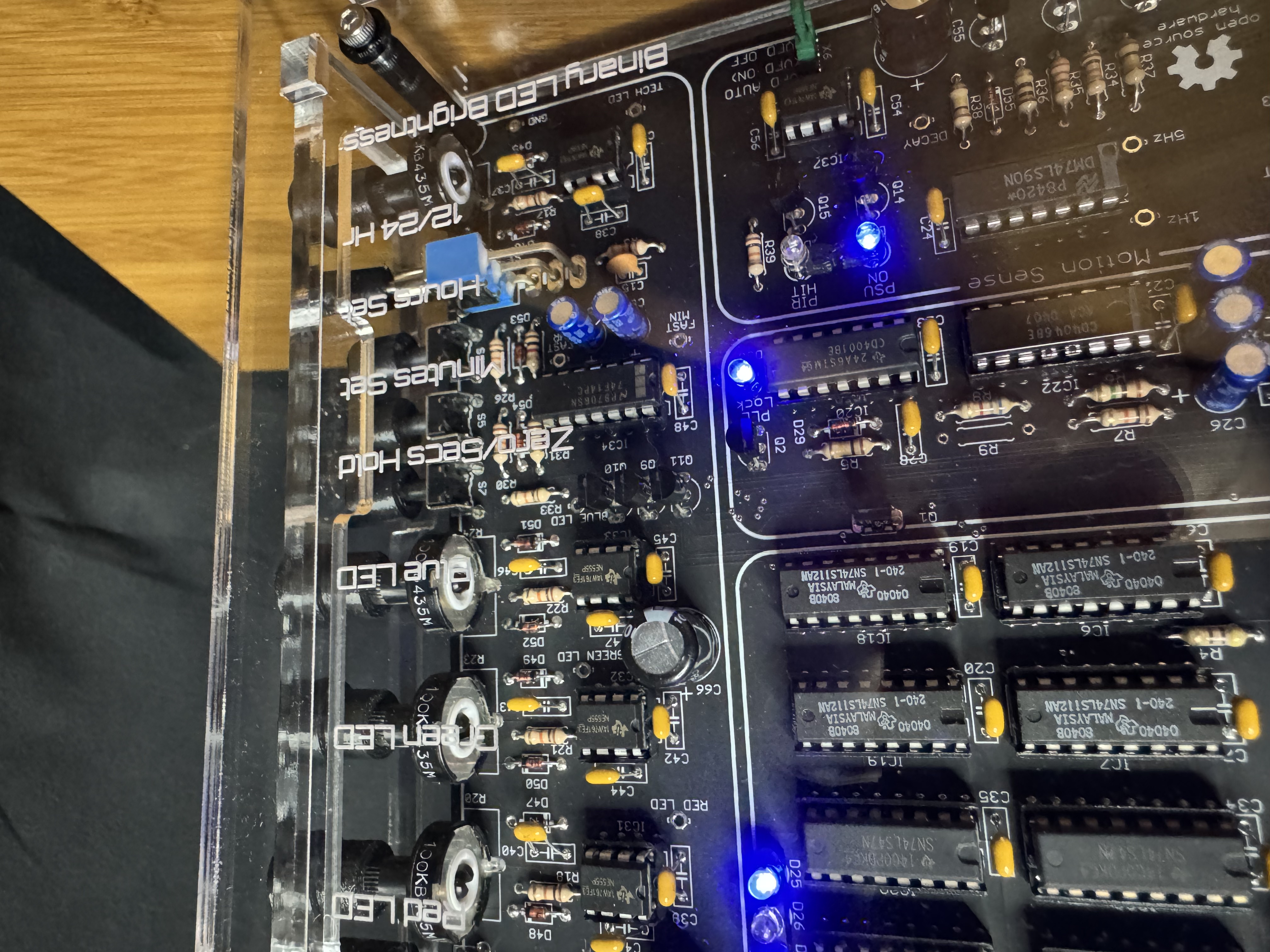 - Binary LED Brightness - Controls the brightness of all the LEDs on the clock PCB (Binary counting, PIR and PLL Lock)
