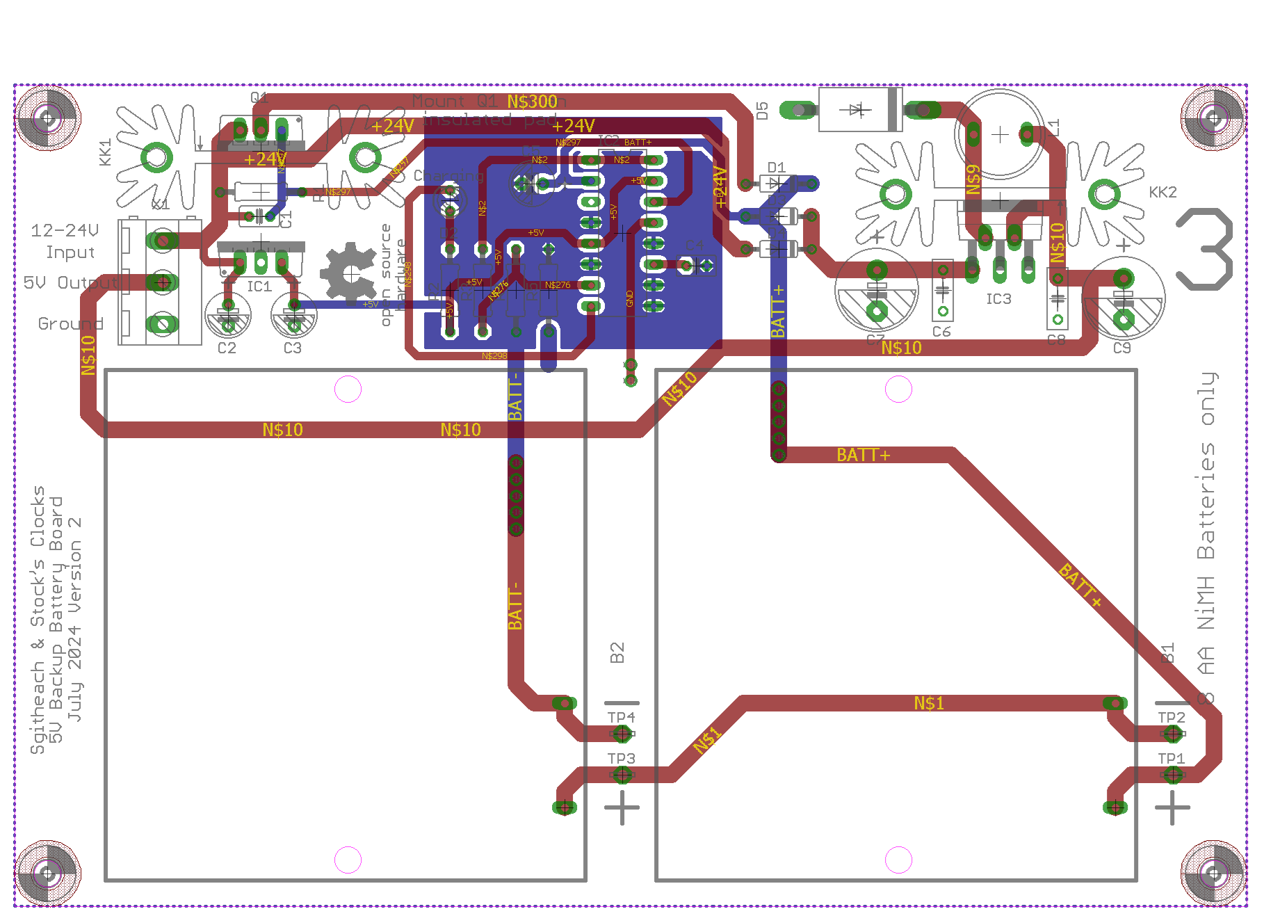 Stocks's Clocks in conjunction with Sgitheach have developed a range of clocks that do not use a microcontroller but rely instead on a swath of old style TTL chips to operate the clock. If power is removed from an operating clock the set time will be lost unless a battery is provided to power the real time clock (RTC) functioning. Modern clocks only need a small lithium cell or supercapacitor as the RTC current demand has been optimised to save power. A clock based on old style TTL has a much higher power demand and is beyond what a small battery or a supercapacitor could be expected to supply. So as an option to these TTL based clocks an optional battery backup board is available.