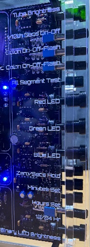 - Binary LED Brightness - Controls the brightness of all the LEDs on the clock PCB (Binary counting, PIR and PLL Lock)